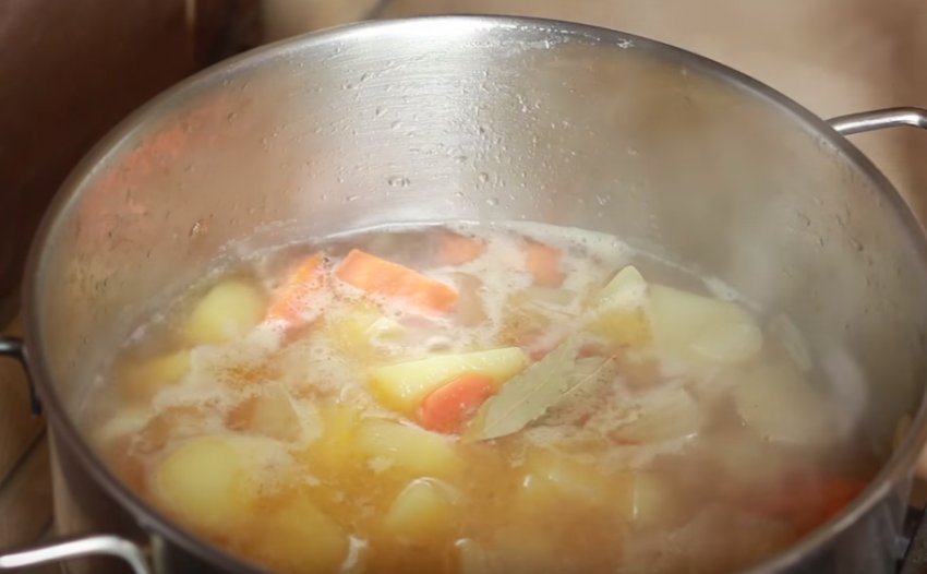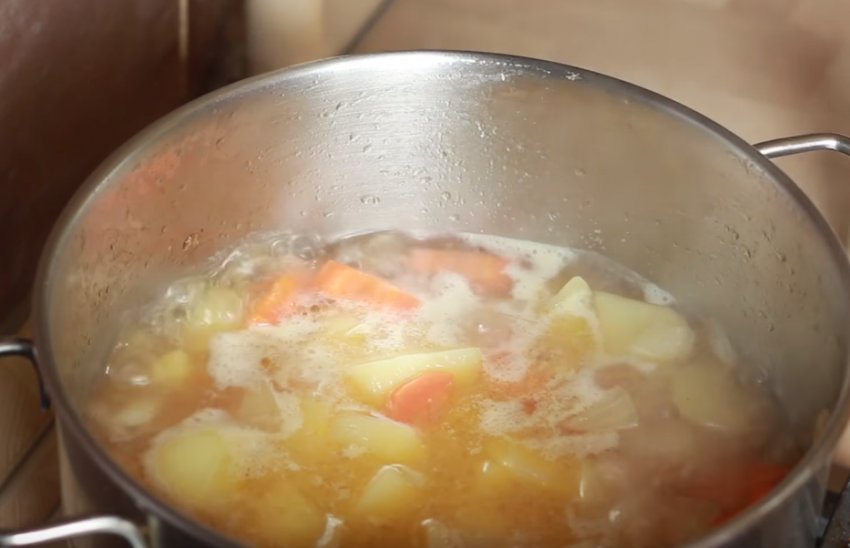 Залийте овочі водою, доведіть суміш до кипіння на максимальному вогні, а потім зменшіть його до середньої інтенсивності.![]()