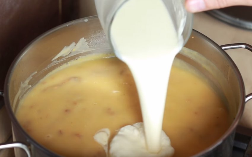 - Коли всі інгредієнти будуть повністю готові, у сковорідку потрібно влити вершки, а потім протушкувати все на мінімальному вогні до загустіння.