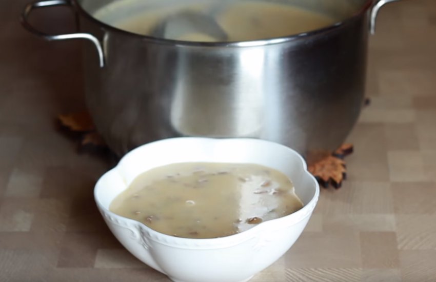- Розігрійте вершки до появи перших бульбашок, а далі перемішайте з перетертими грибами та цибулею, після чого помістіть в окрему ємність.