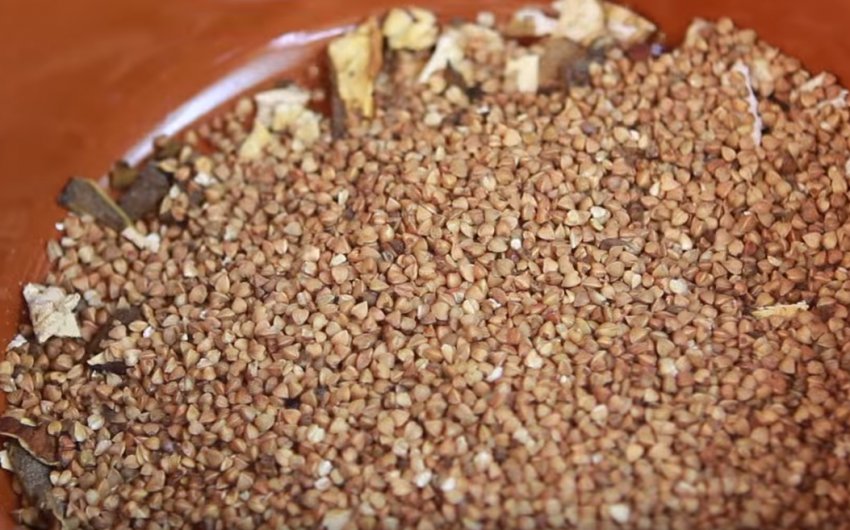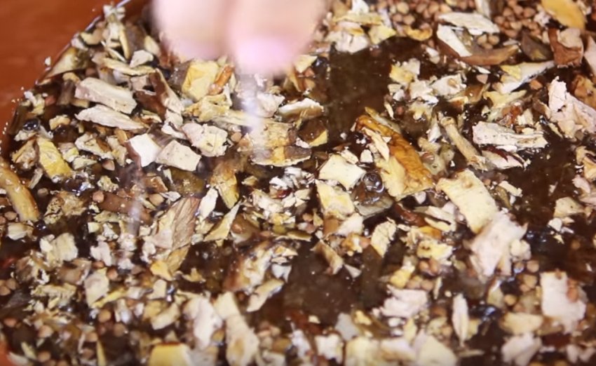 - Відваріть гречку в бульйоні, що залишився після варіння грибів.
