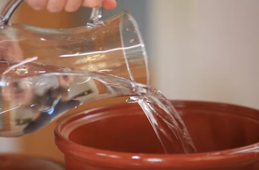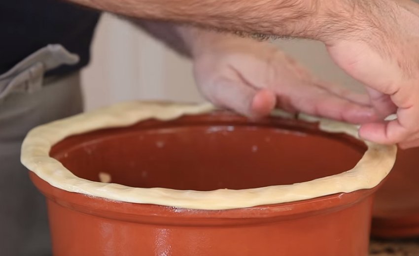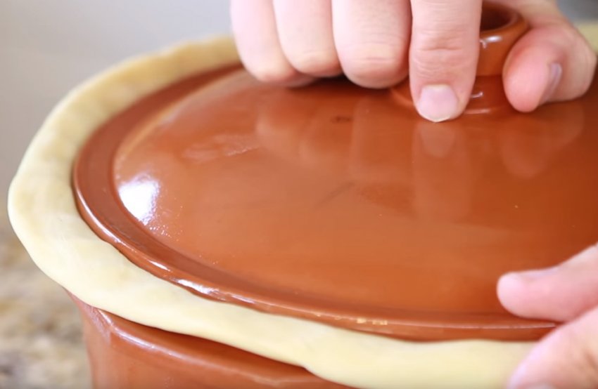 Посолити вміст і змастити краї глиняного горщика вершковим маслом.![]()