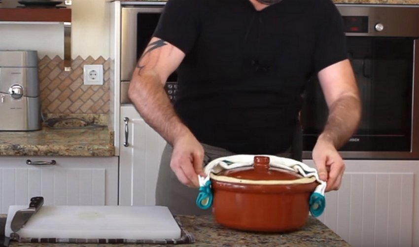 Вийняти горщик із кашею з духовки і відкрити кришку.![]()