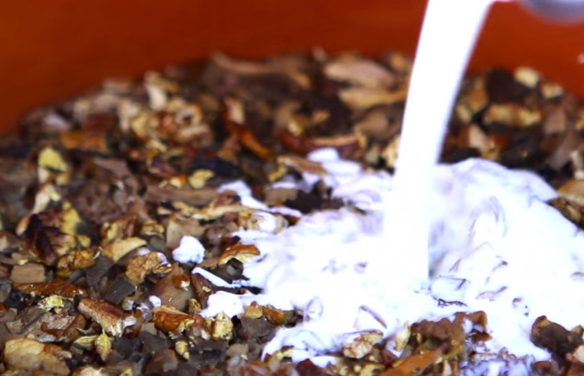 - Смажте всі інгредієнти протягом 15 хвилин, щоб випарувалася волога з плодових тіл.
