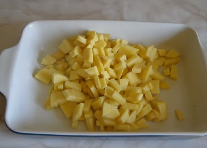 від шкірки картоплю і нарубати у вигляді кубиків.![]()