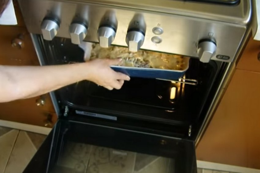- Змастити страву зверху сметаною, вирівнюючи поверхню.