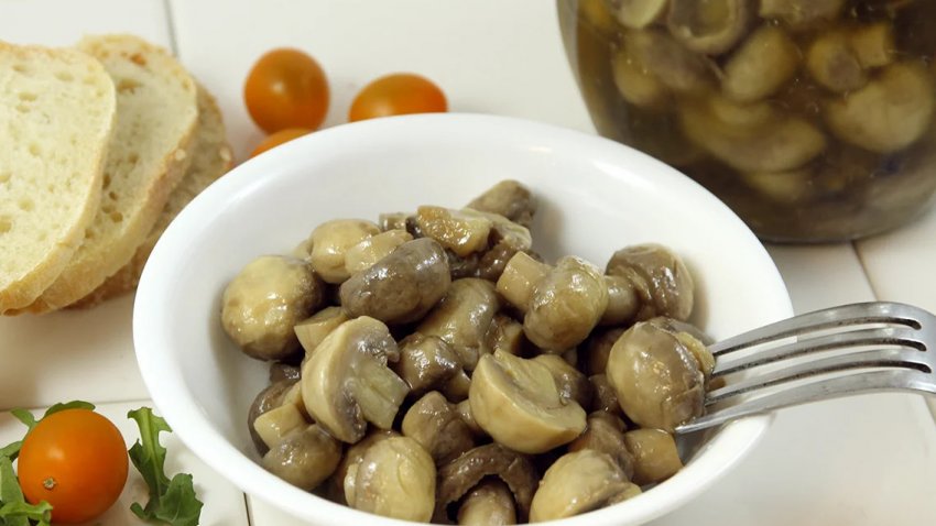- Можна розкласти мариновані гриби в стерильну склотару, залити до верху маринадом, закрити кришками і поставити в холодне місце. А можна остудити закуску й одразу подати її до столу.
