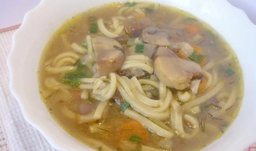 Ароматний суп із грибами має багатий і насичений смак. Його можна заправляти будь-яким соусом і комбінувати з будь-якими продуктами. З нього можна також зробити крем-суп, збивши блендером. У такому вигляді грибниця підійде навіть для подачі на святковий стіл.