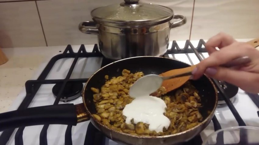 дві ложки сметани, перемішати. Обсмажити ще 5 хвилин.![]()