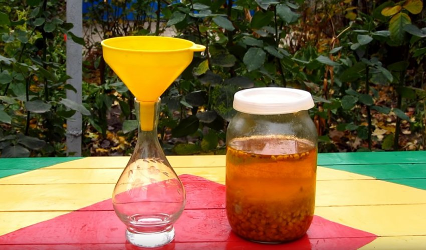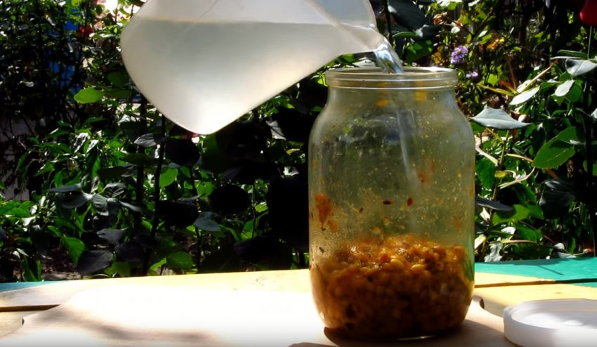 Закрити ємність кришкою. Поставити в місце, куди не проникають сонячні промені. Витримати 4-5 тижнів.![]()