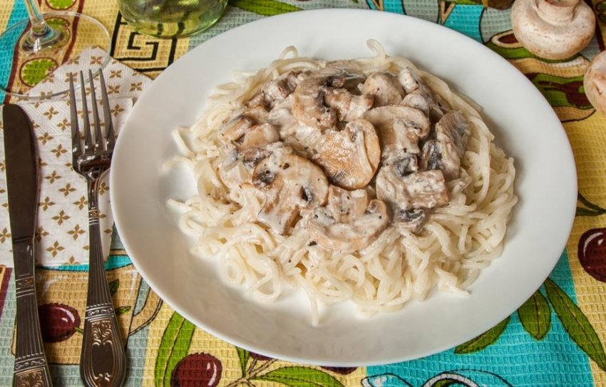 - Сирний соус із печерицями чудово смакує до різних гарнірів, зокрема добре поєднується зі спагеті.