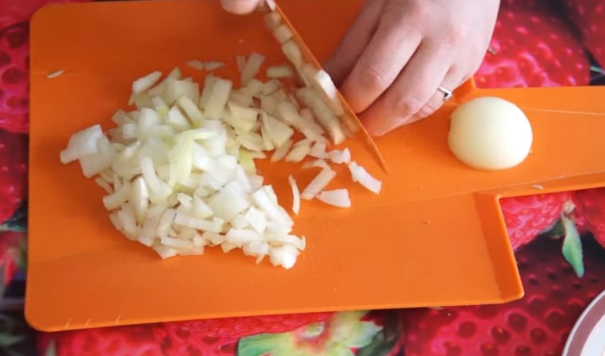 - Цибулину слід очистити та накришити якомога дрібніше.
