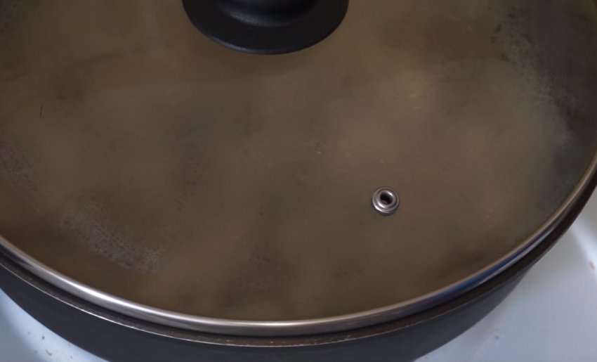 - Накрийте сковорідку і поставте тушкуватися на повільний вогонь 7 хв.