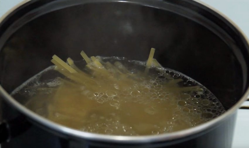 - Поставте кип'ятитися воду для того, щоб зварити спагеті.