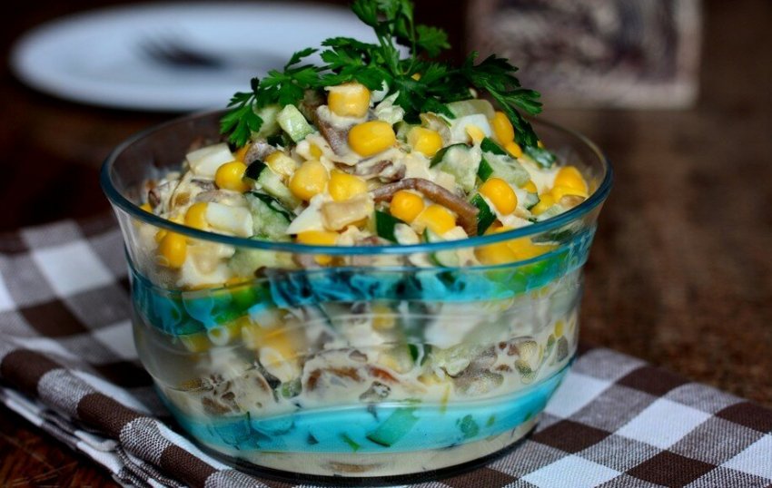 - Змішайте всі складові та, заправивши майонезом, подайте до столу.
