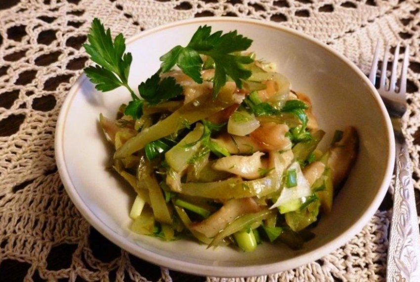 - Очистіть гриби від шкірки на капелюшку, помийте їх і наріжте не товстими пластинками.