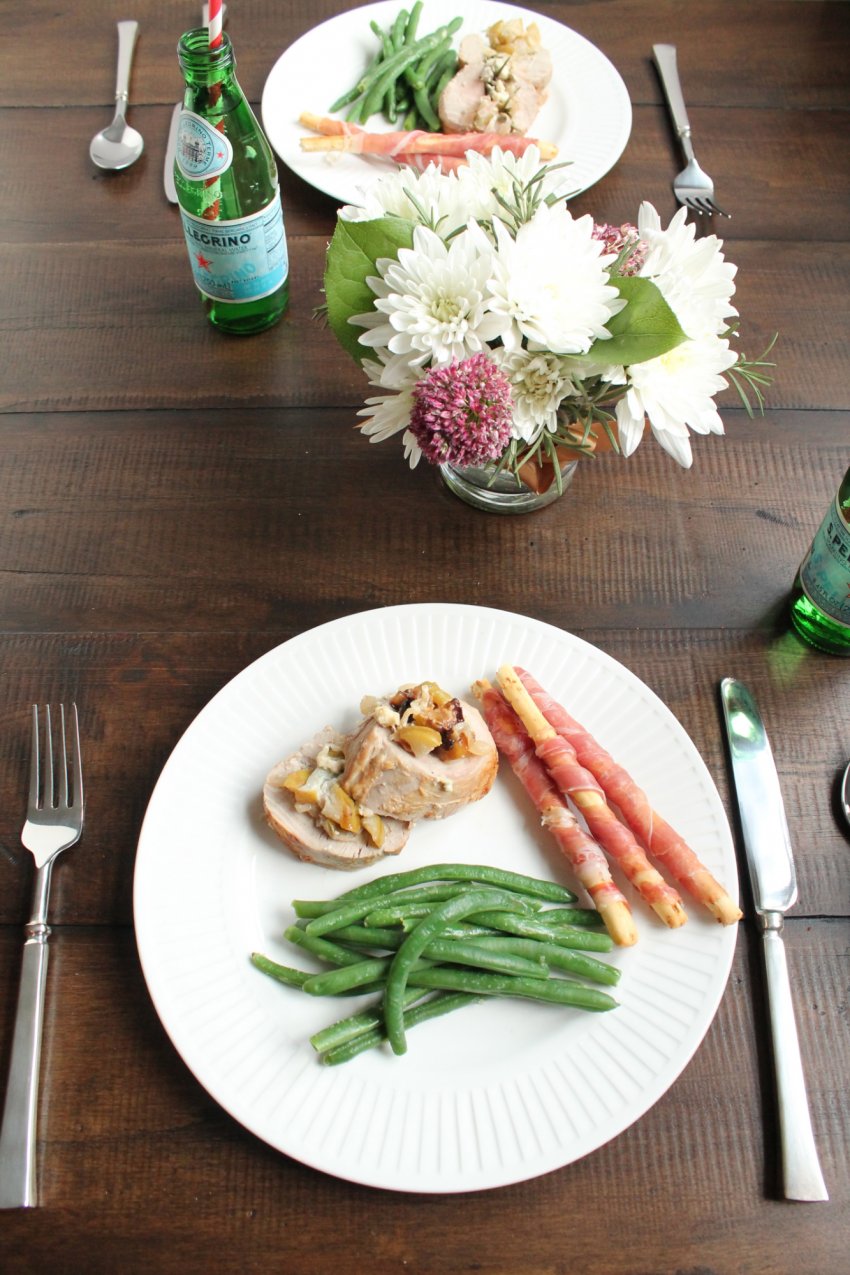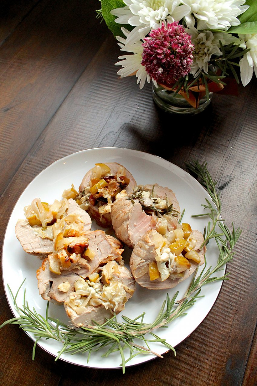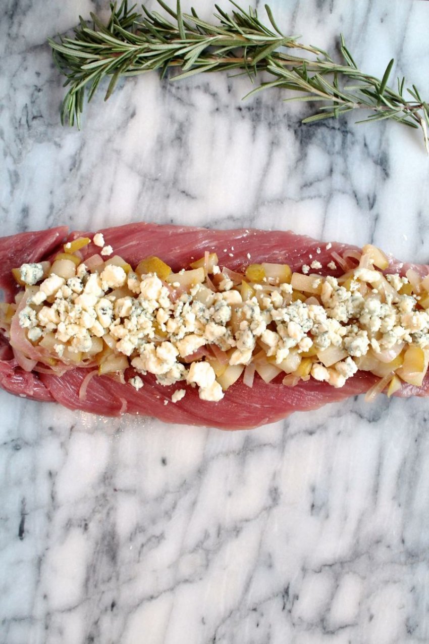 Свиняча вирізка, фарширована цибулею-шалот, грушею і блакитним сиром