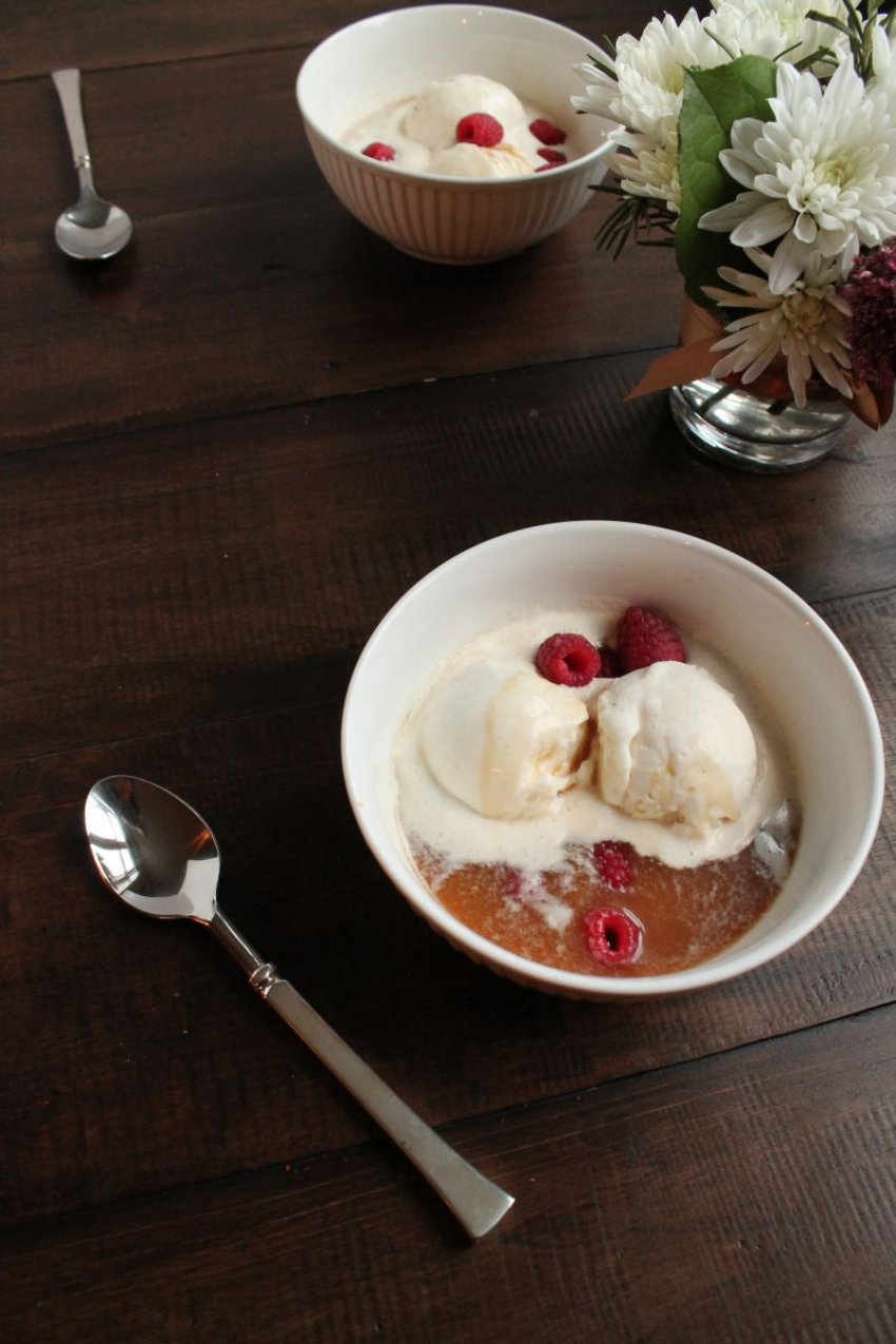 Для початку вам потрібно зварити міцну каву (1 велику чашку або 2 еспресо). Остудивши напій до кімнатної температури, перед самою подачею десерту викладіть у креманки ванільне або вершкове морозиво, залийте міцною кавою і прикрасьте малиною. Подавати цей десерт потрібно негайно!