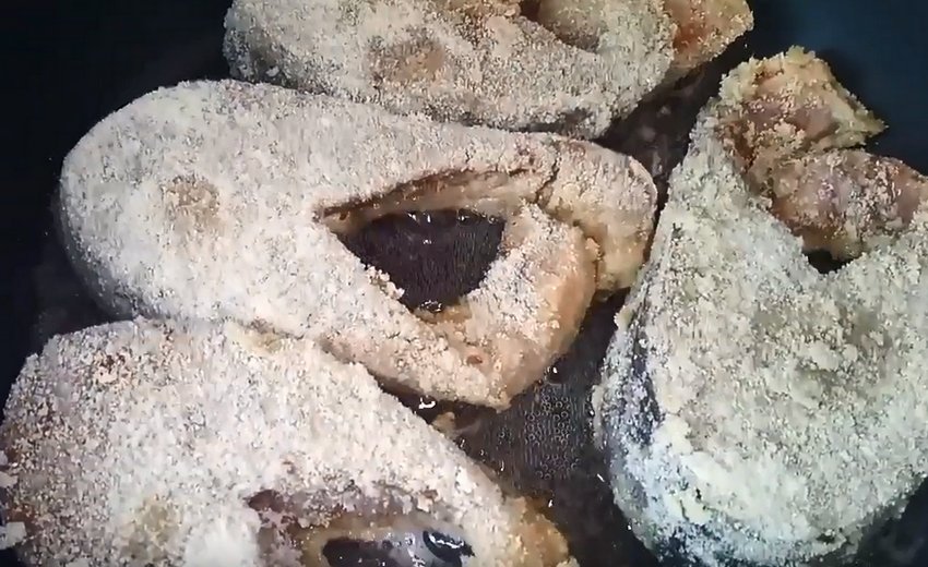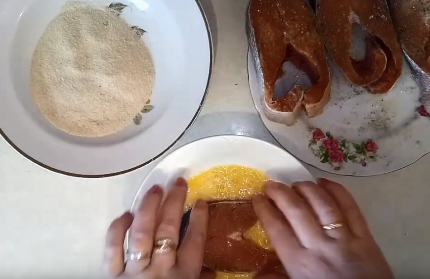 Збити яйця виделкою і вмочити стейки з усіх боків спочатку в яйцях, а потім обваляти в декількох ложках панірувальних сухарів або в борошні.![]()