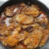 Сметану розбавити 150 мл теплої води і таким маринадом залити продукти. Випікати протягом 25 хв. за +180°С.![]()