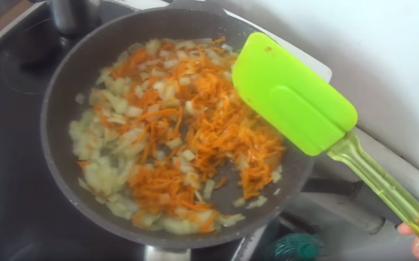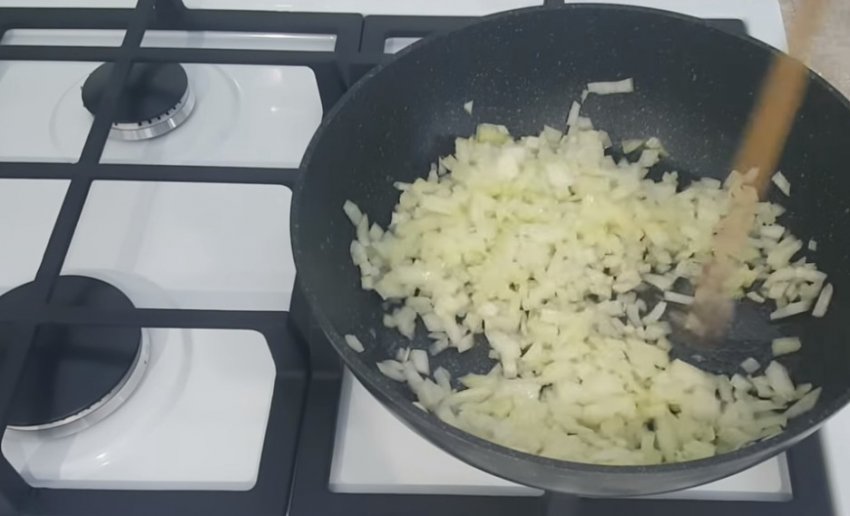 Цибулеву сировину обсмажити на рослинній олії до прозорого стану.![]()