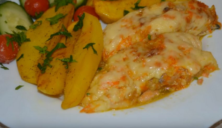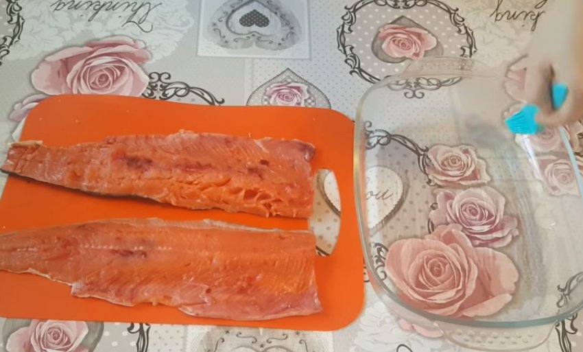 Рибу очистити, промити і обробити на філе, звільнити від хребта і кісточок. Порізати на порційні шматочки, посолити та поперчити.![]()