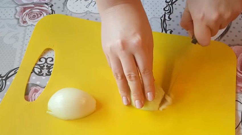 Цибулини подрібнити у вигляді кубиків середніх розмірів.![]()