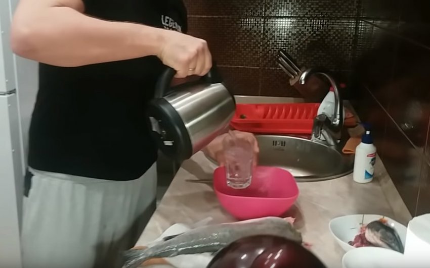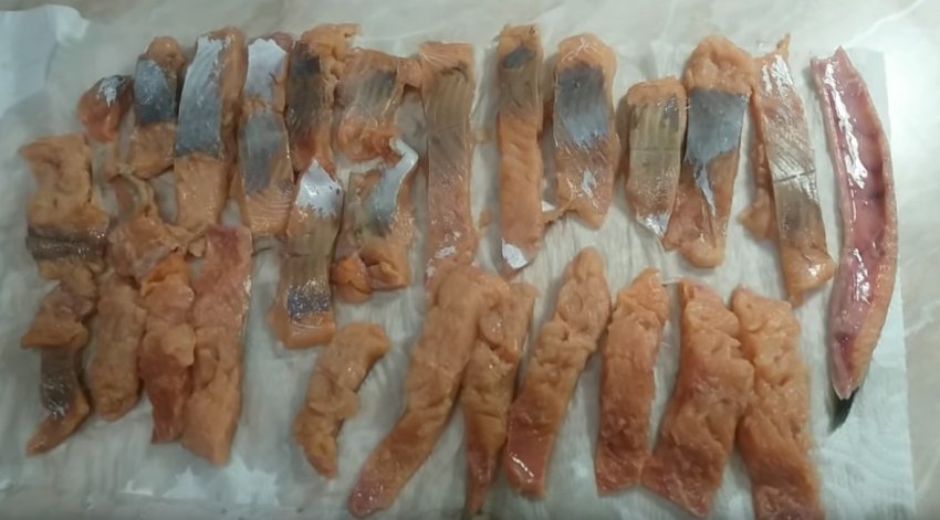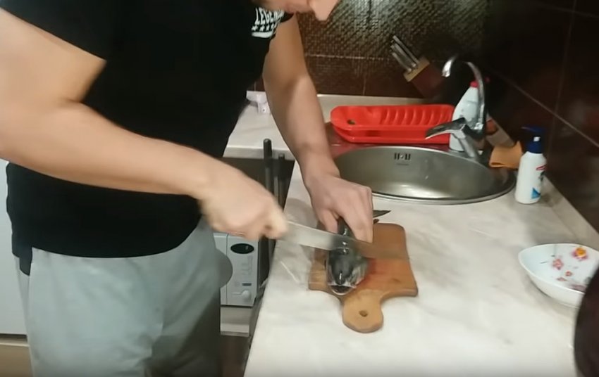 - Промити рибу, очистити від луски. Відрізати голову і хвіст, видалити нутрощі.