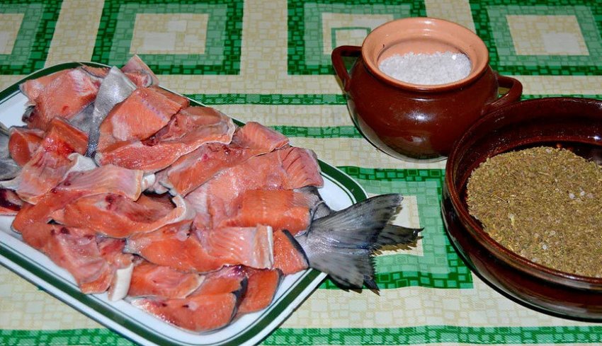 - можна використовувати свіжу або заморожену тушку, але в другому випадку перед посолом продукт потрібно розморозити;