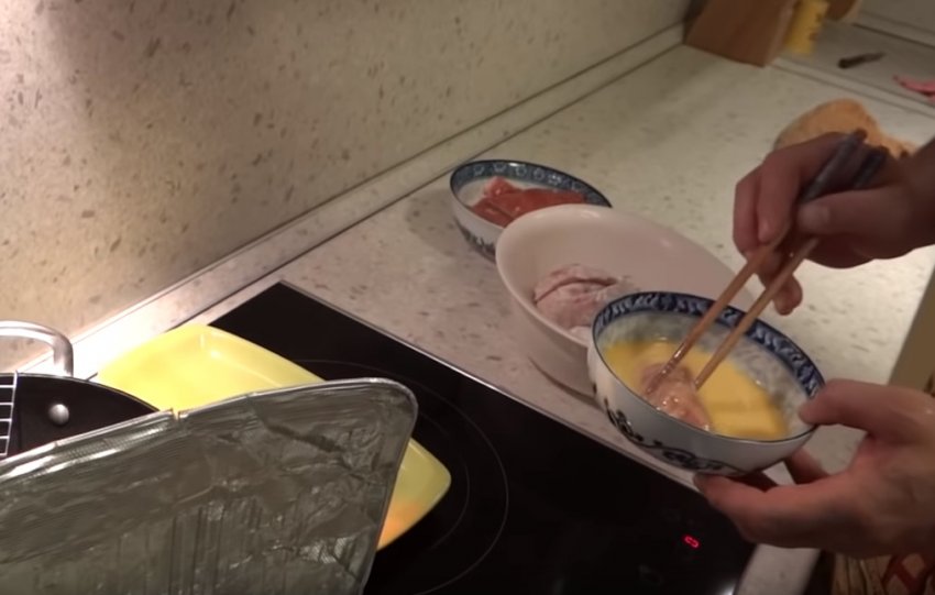 Для кляру збийте яйця з додаванням 1 ч. ложки крохмалю та однієї склянки світлого пива.![]()
