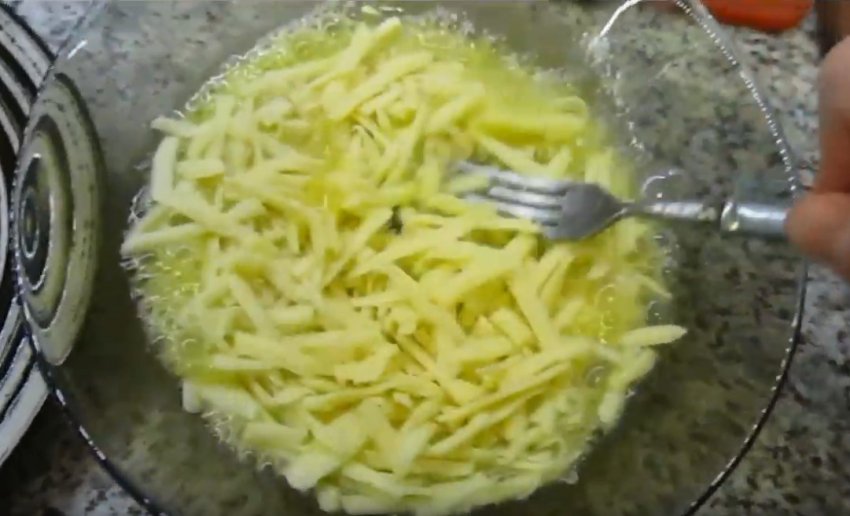 Потім помістіть смажені часточки на решітку, щоб стікало масло. Через кілька хвилин страву можна розкласти на тарілки.![]()
