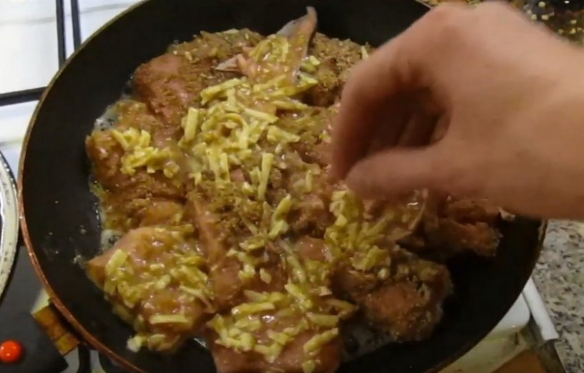 Щоб зробити кляр, спочатку натріть сир на дрібній тертці. Потім збийте два яйця з додаванням солі і тертого сиру. В окрему ємність насипте сухарі. Обваляйте в яєчно-сирній суміші рибні шматки, помістіть їх у панірування, а після - на сковороду.![]()