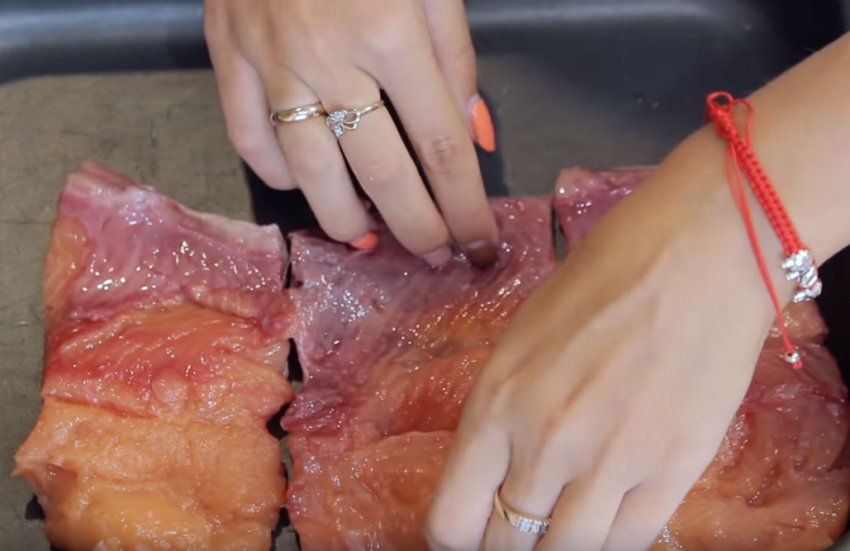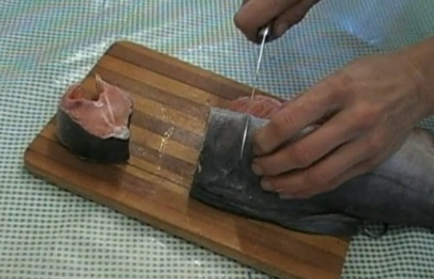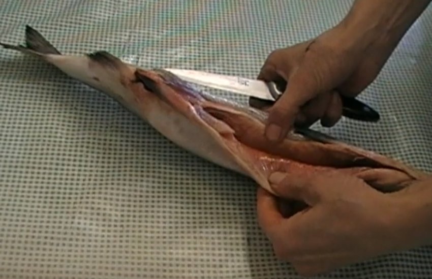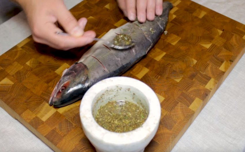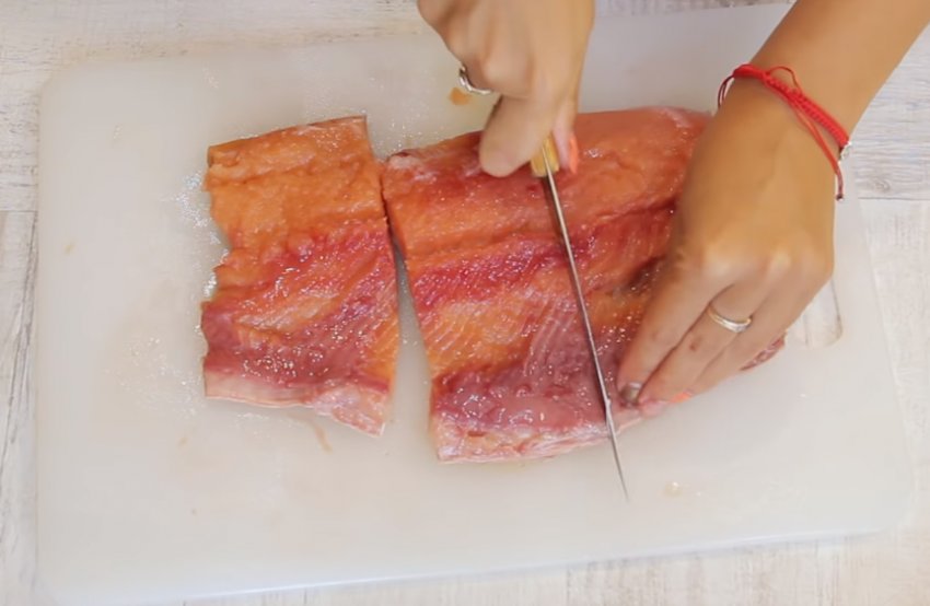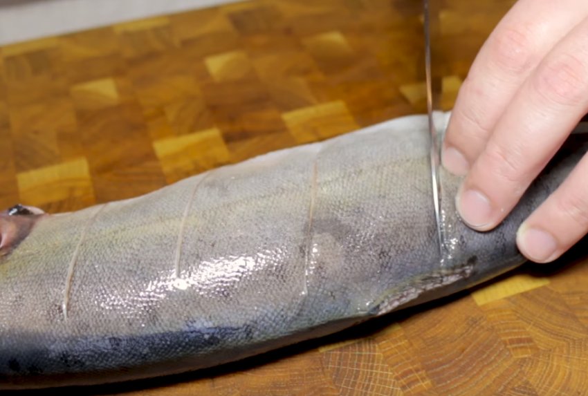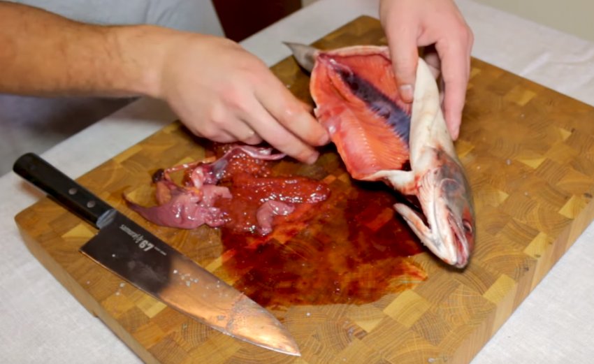 Після вибору горбуші її варто ретельно очистити від луски і всього вмісту черевної порожнини, відрізати зябра, плавники, голову, добре промити і покласти тушку на сухий рушник, щоб вона просушилася.
