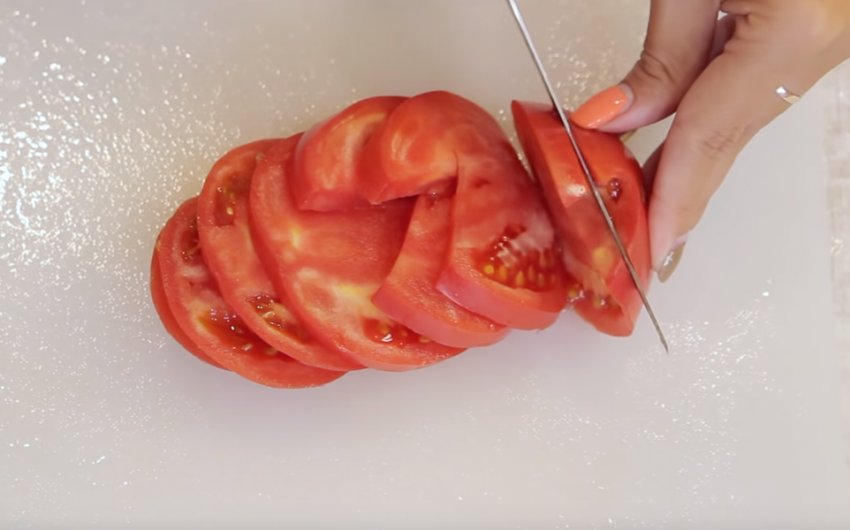 Наріжте помідори кільцями, а сир потріть на крупній тертці.![]()