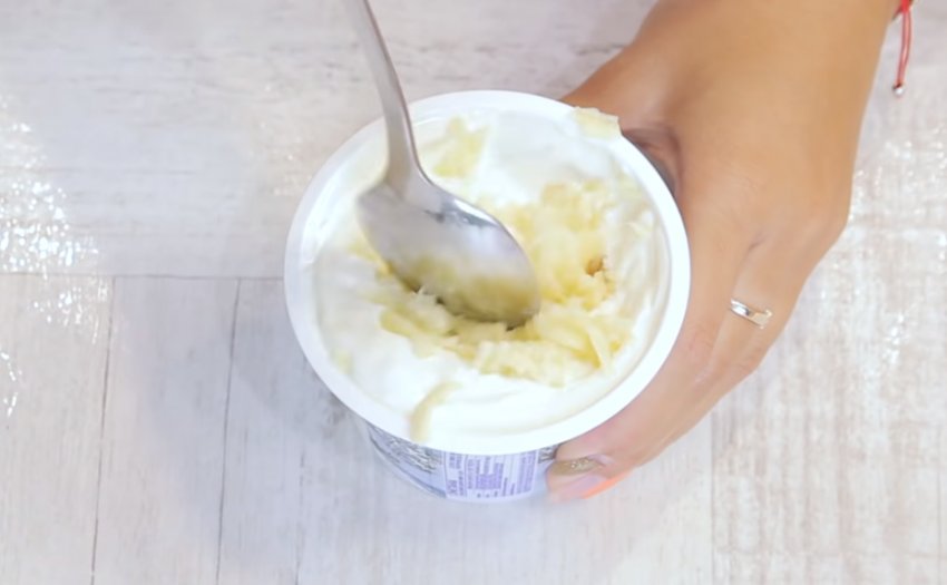 Потім потрібно почати готувати сметанний соус. Робиться це досить просто: вилийте сметану в глибоку ємність, видавіть у неї часник і добре перемішайте.![]()