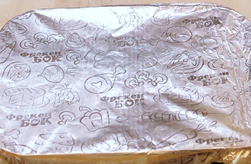 Закрийте форму фольгою і відправте в духову шафу.![]()