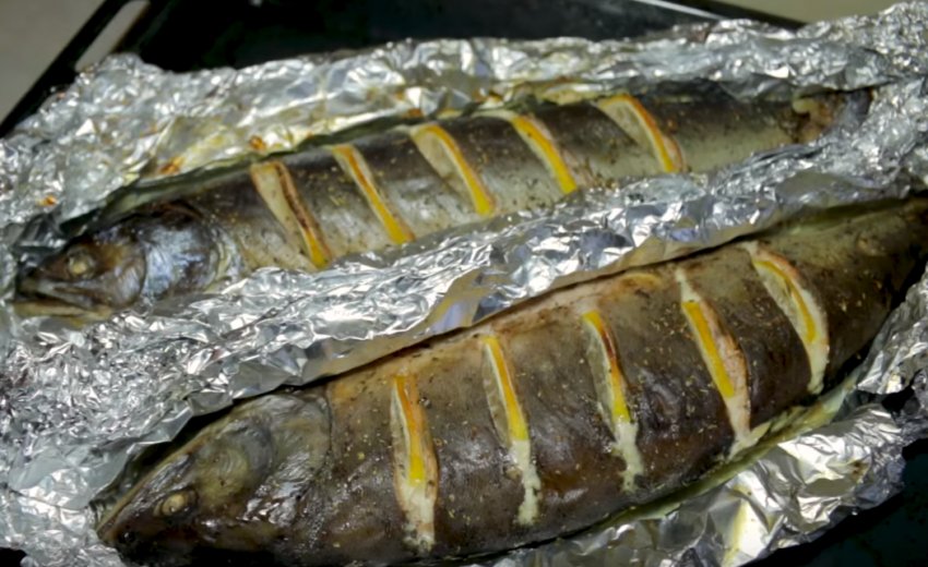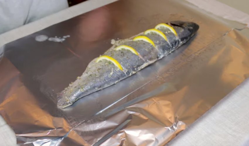 Через зазначений час відправте рибу в заздалегідь розігріту до 200°С духову шафу, де вона повинна готуватися півгодини. Через 20 хвилин не забудьте розкрити страву, щоб протягом решти часу готування вона встигла підрум'янитися. Але температуру варто знизити до 160°С. Риба готова до вживання.![]()