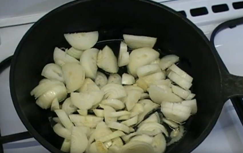 Цибулю поріжте півкільцями та просмажте на сковорідці до напівпрозорого стану.![]()