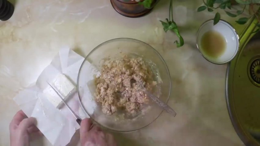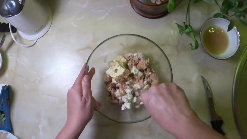 Додати вершкове масло. Розім'яти суміш виделкою.![]()