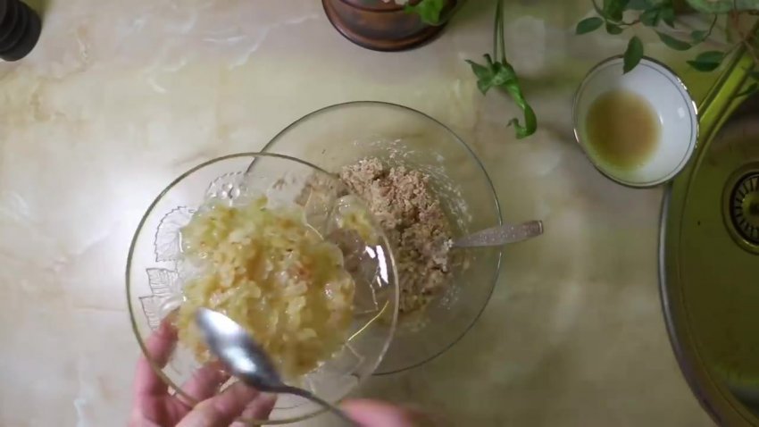 Ввести остиглу обсмажену цибулю. Перемішати суміш.![]()