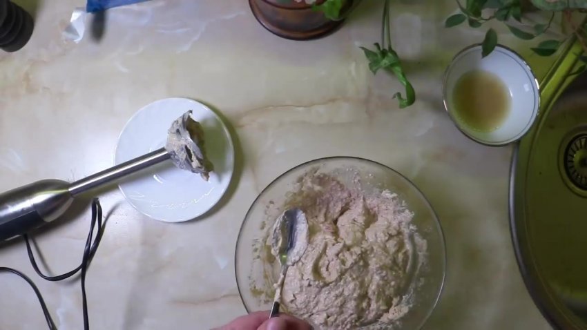 Збити масу занурювальним блендером до однорідного стану. Зробити пробу. Якщо потрібно, додати сіль і перець.![]()
