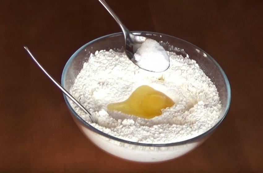 У сипучій масі зробити заглиблення, покласти в нього сіль (приблизно 5 грам), яйце.![]()