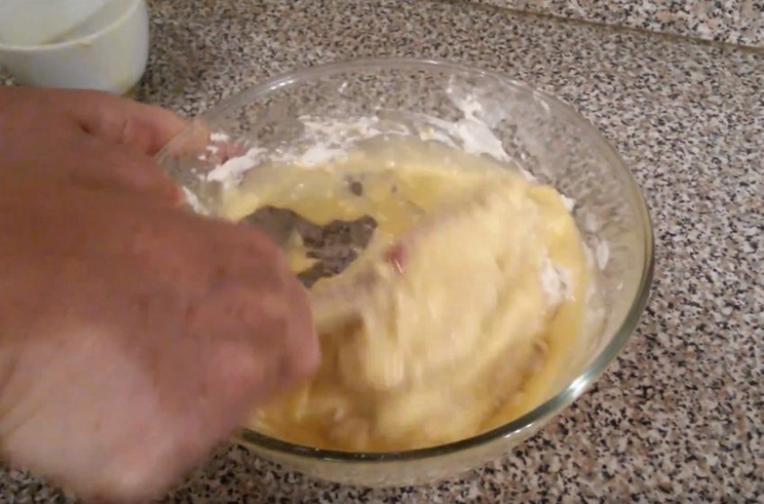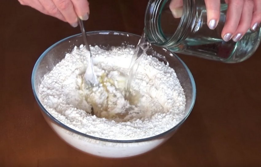 Постійно помішуючи, поступово ввести воду, перетворюючи масу на однорідне тісто.![]()