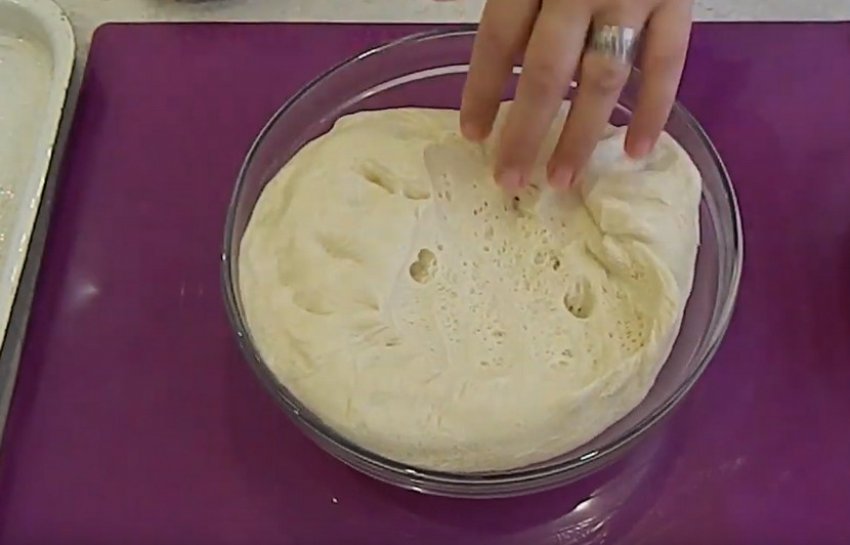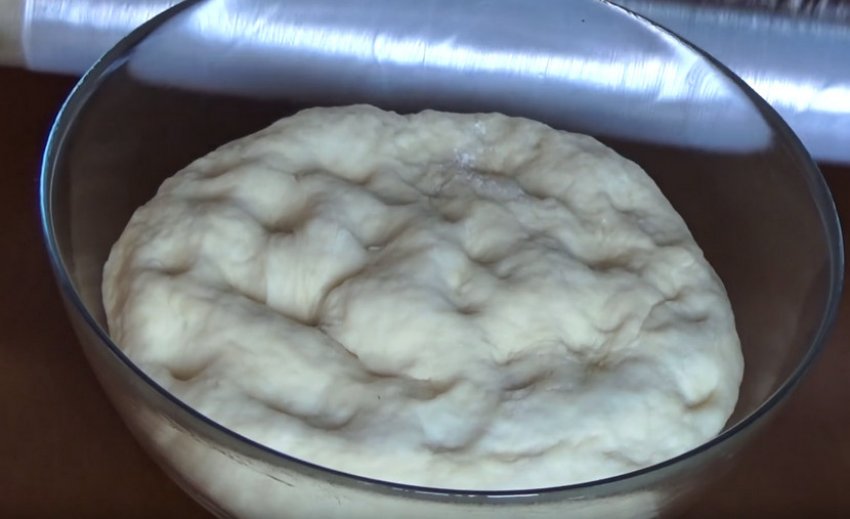 Миску з тістом накрити харчовою плівкою і відправити в тепле місце для підйому, приблизно на 30 хвилин. За цей час рекомендується його 1-2 рази прим'яти.![]()