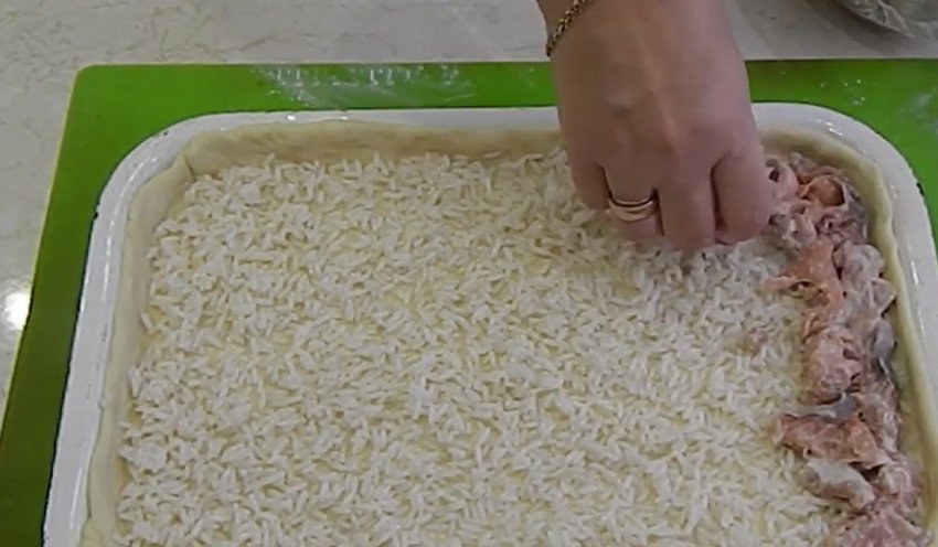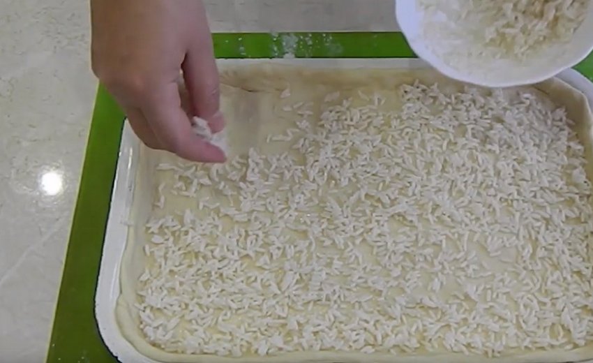 Розподілити по поверхні рівномірно відварений рис.![]()