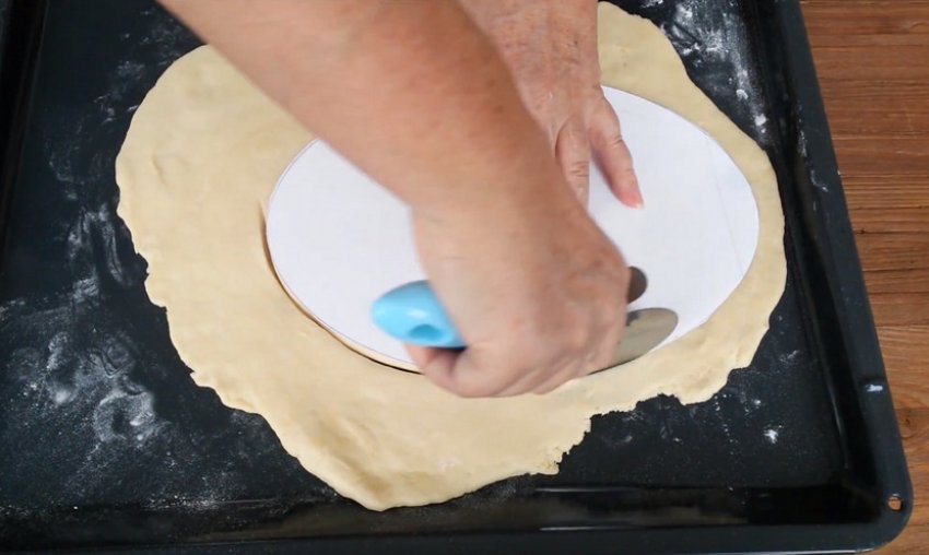 Розпакувати тісто і розділити на дві частини так, щоб одна була трохи більшою за іншу.![]()