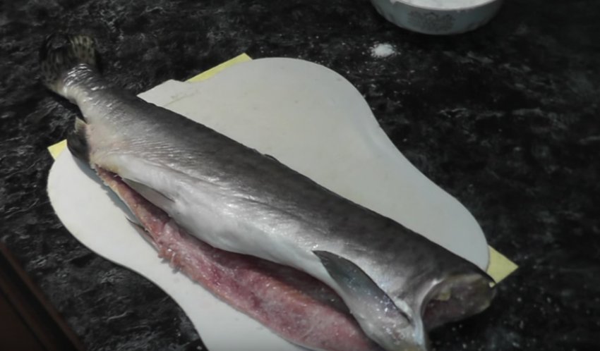Розрізати рибу вздовж і витягти всі дрібні кісточки.![]()