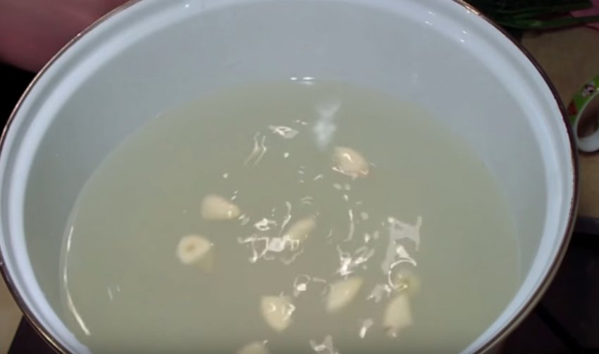 Додати 2-3 зубки очищеного часнику. Їх можна розрізати, щоб посилити аромат.![]()