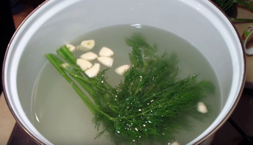 Потім у каструлю покласти пучок вимитого кропу. Довести до кипіння і прокип'ятити 15 хв.![]()