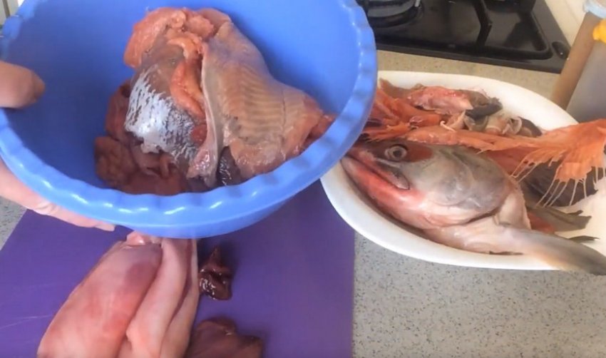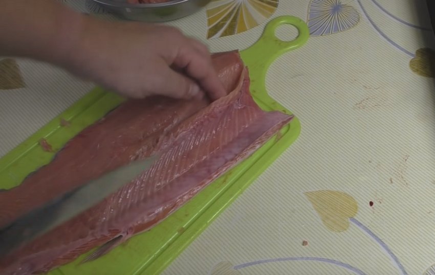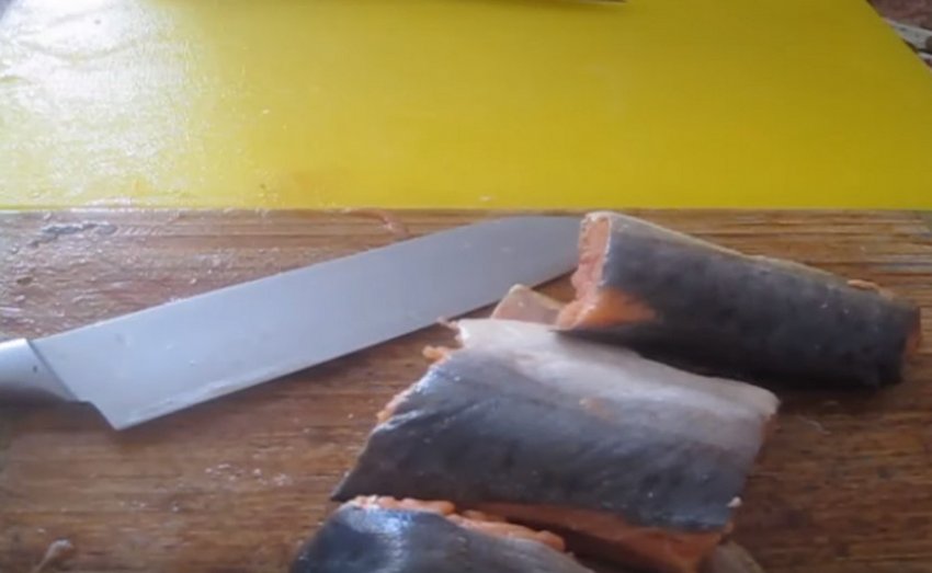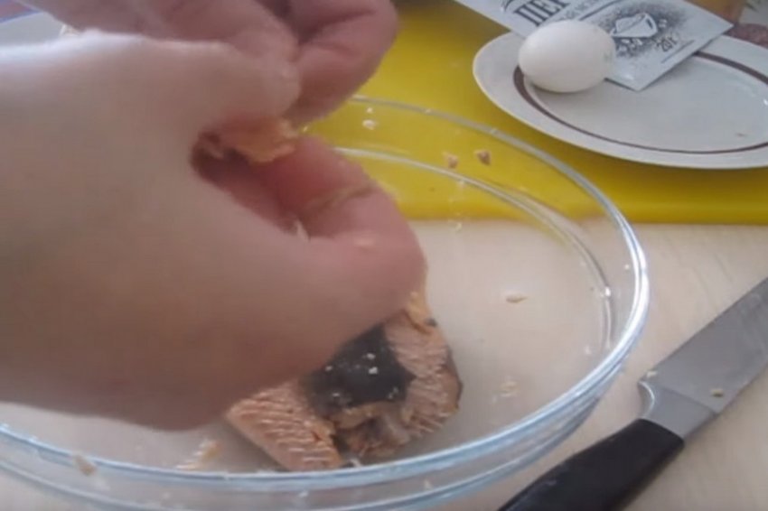 - Морожену рибу попередньо відтаюють, чистять, витягують кістки з м'ясистої м'якоті. Вихід філе з однієї риби середнього розміру - приблизно 0,5 кг. Його рубають ножем дрібно.