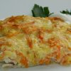 - Після закінчення зазначеного терміну дістаньте страву, посипте натертим сиром і відправте готуватися в духову шафу за тієї ж температури ще на 10 хвилин.
